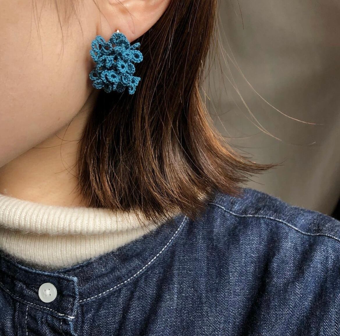 ひとつの円を編み上げてつくる耳飾り。 ボリュームがあるのにふわっと軽く、着けていてもストレスフリー。 シンプルなお洋服に差し色としてカラーを入れてもいいですし、合わせやすいベーシックカラーで毎日のコーディネートに着けても◎ 色んな色を集めたくなるアクセサリーです。 長さ 約3㎝前後